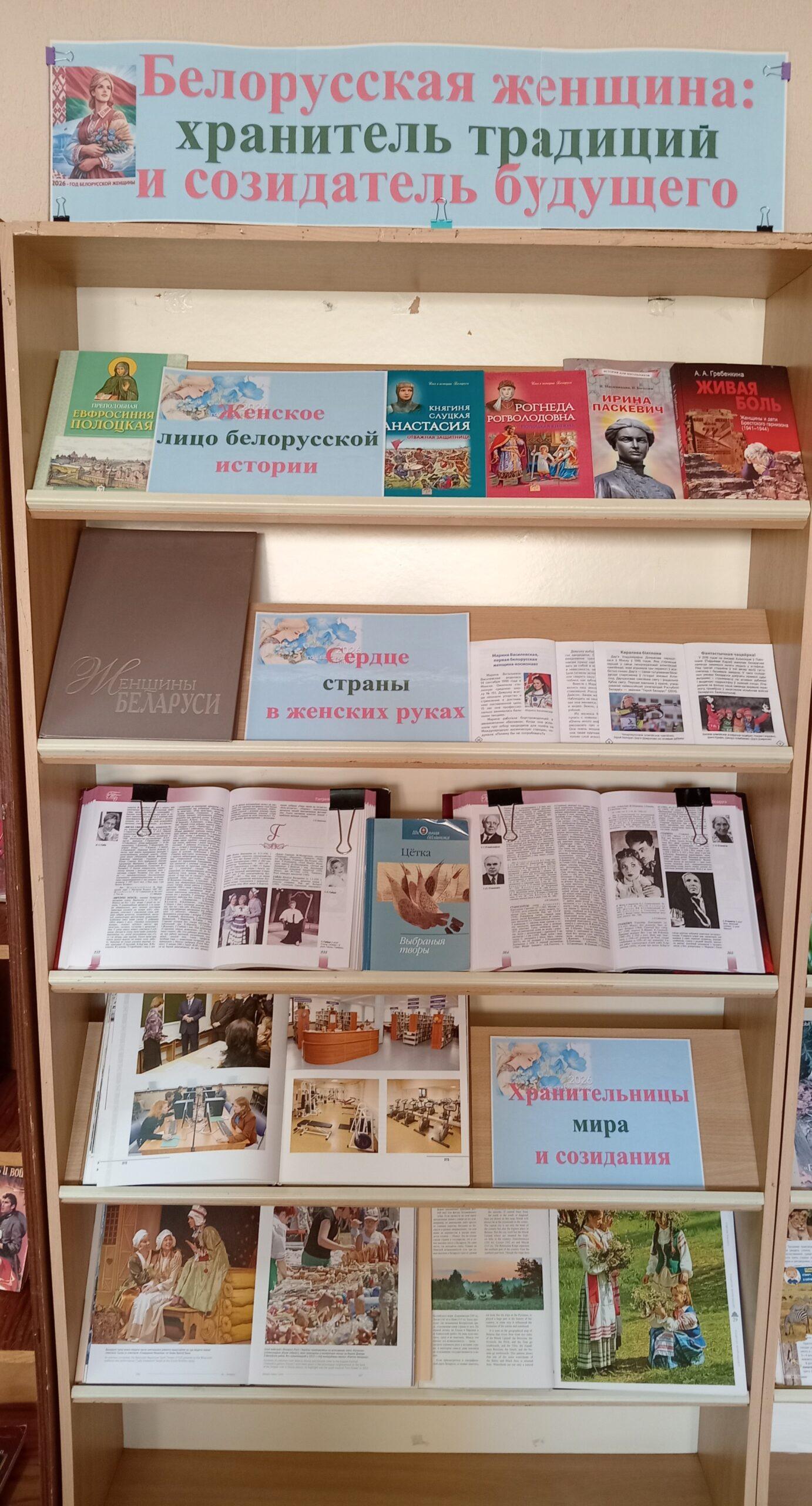 В филиале «Линовская сельская библиотека» оформлена книжная выставка «Белорусская женщина: хранитель традиций и созидатель будущего», раскрывающая всю многогранность белорусской женщины. На выставке представлены произведения о выдающихся женщинах и их вкладе в развитие страны.
