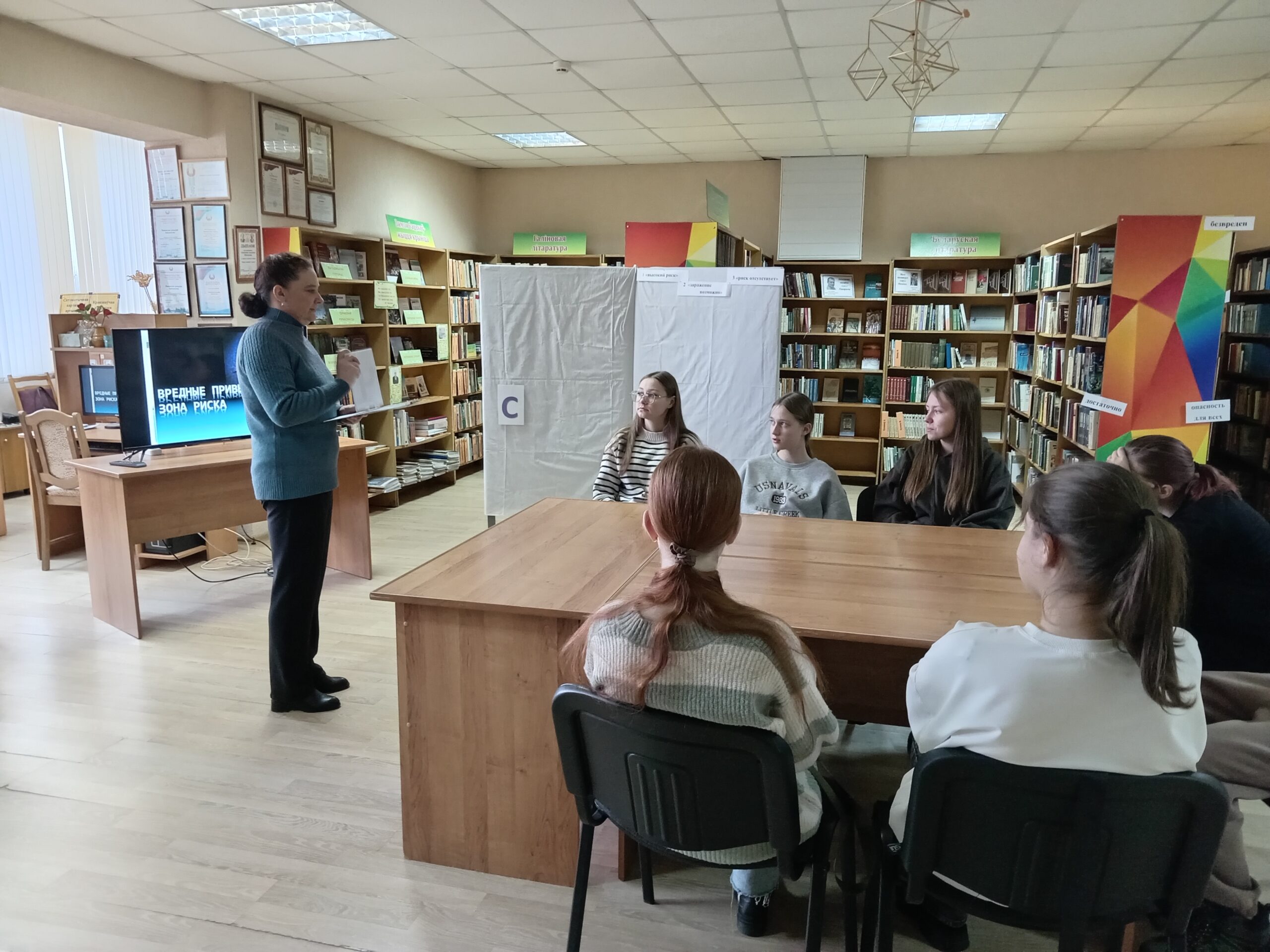 Ко Всемирному дню профилактики СПИДа филиал «Линовская сельская библиотека» для учащихся 10 класса подготовил устный журнал «Вредные привычки – зона риска». Во время мероприятия присутствующим рассказали историю возникновения ВИЧ\СПИДа, раскрыли понятие «невидимая опасность», познакомили со статистикой по ВИЧ/СПИДу, рассказали о знаменитостях умерших от СПИДа. Последняя страница журнала состояла из заданий: «Четыре угла», «Ассоциации», «Риск заражения», во время которых ребята отвечали на поставленные вопросы, а также обсуждали предложенные ситуации.
