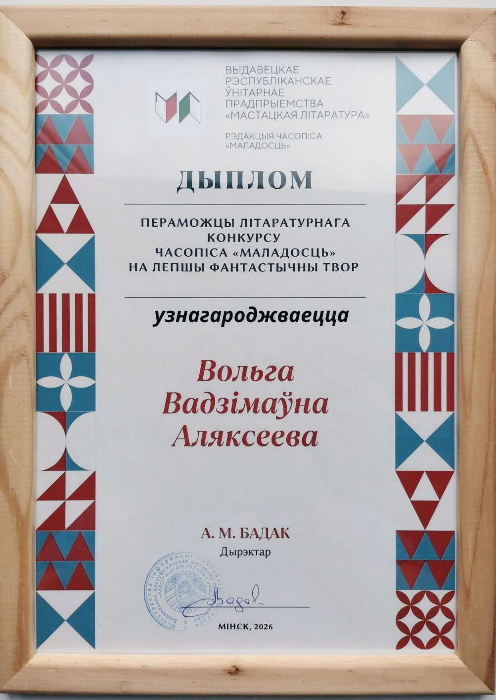 Віншуем Вольгу Вадзімаўну з узнагародай і жадаем натхнення, творчага запалу і поспехаў у новых праектах.