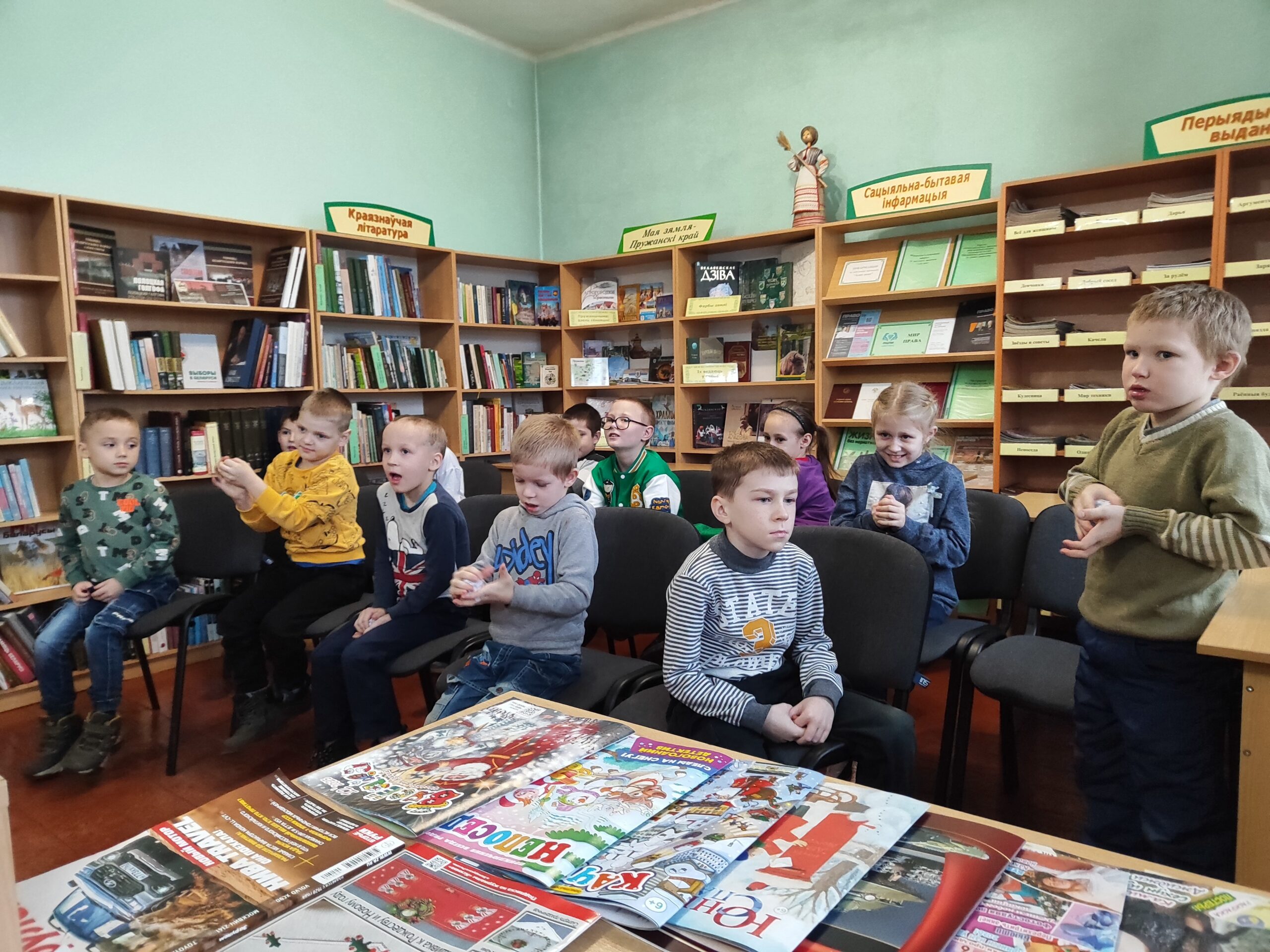 В рамках акции «Полезные каникулы» библиотекари Шерешевской горпоселковой библиотеки пригласили ребят из пришкольного лагеря на конкурсно-игровое ассорти «В царстве ёлочных игрушек». Библиотекарь рассказала, каким долгим был путь ёлочной игрушки, показала ребятам ёлочные игрушки разных лет выпуска, к сожалению, некоторые только на фото. А потом ребята с удовольствием рассказывали забавные новогодние истории, отвечали на вопросы шуточной викторины, участвовали в конкурсе «Морозная пантомима», проверяли свою ловкость и сноровку.