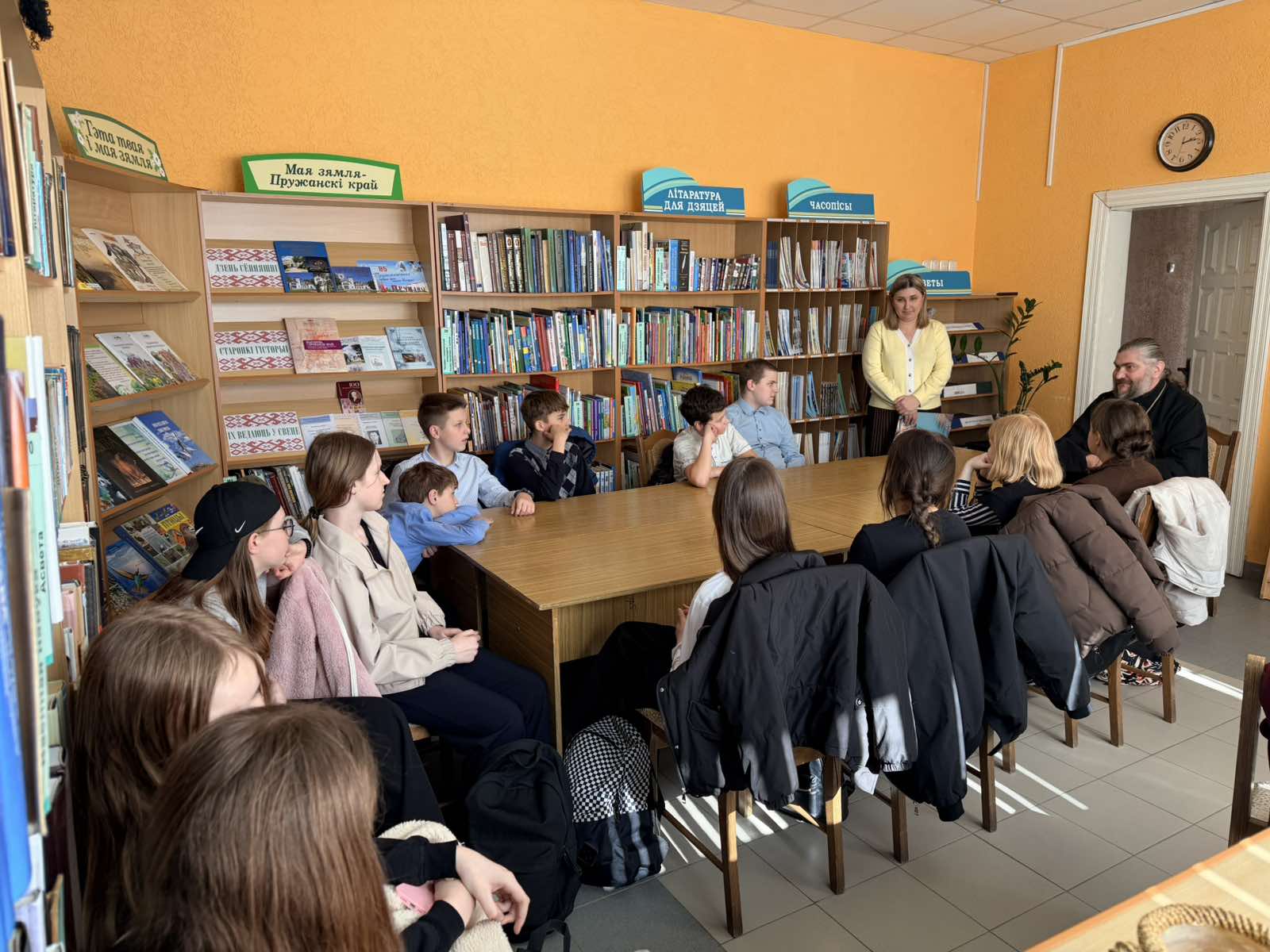 12 марта в филиале «Пружанская городская библиотека» прошёл час православия «Живое слово мудрости духовной» для учеников 6 «В» класса СШ №5, посвящённый Дню православной книги. Дети познакомились с православными книгами, которые есть в библиотеке. В мероприятии принял участие настоятель храма святителя Николая Чудотворца протоиерей Вячеслав Левый.