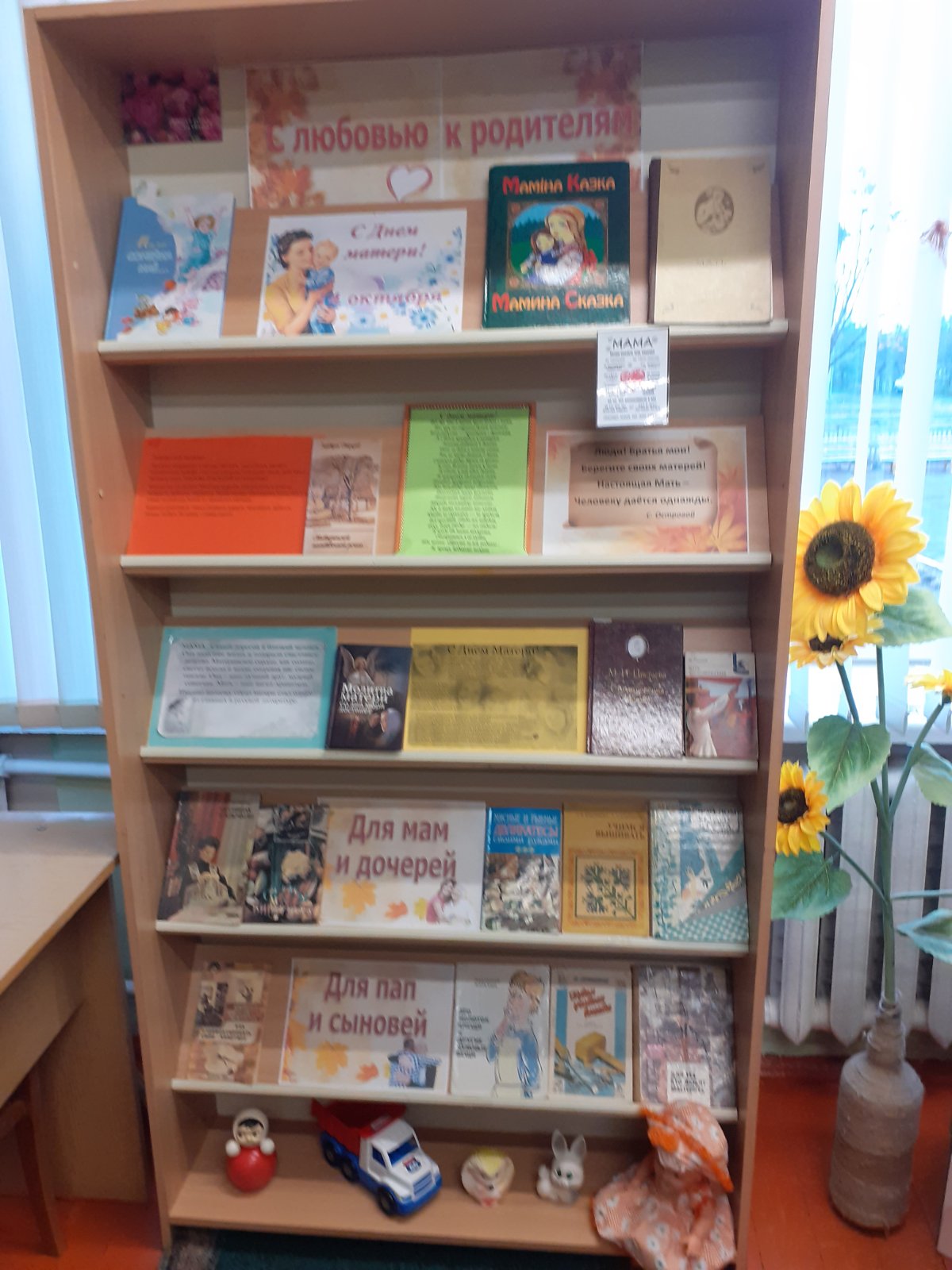 К мероприятию в библиотеке оформлена книжная выставка «С любовью к родителям».