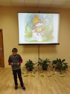 Гостями детско-юношеского отдела ЦРБ им. М.Засима стали ученики 3-го класса СШ № 4. Ребята заочно совершили прогулку в осенний лес. Они собирали грибы (игра «Полная корзинка») и учились распознавать по цвету и форме листья, которые упали с разных деревьев. На лесной тропинке дети встретились с лесным Гномиком Кирюшей. С новым другом они играли (игра «Кочки), разгадывали загадки, читали стихи и смотрели мультфильм-сказку «Сказка про чужие краски».