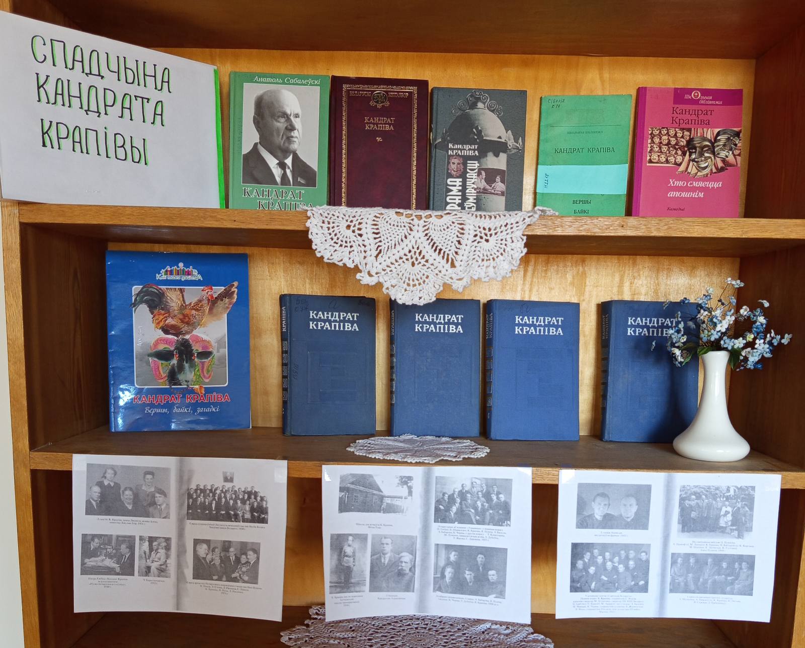 У філіяле «Слабудская сельская бібліятэка» да 130-годдзя з дня нараджэння Кандрата Крапівы аформлена кніжная паліца «Спадчына Кандрата Крапівы».
