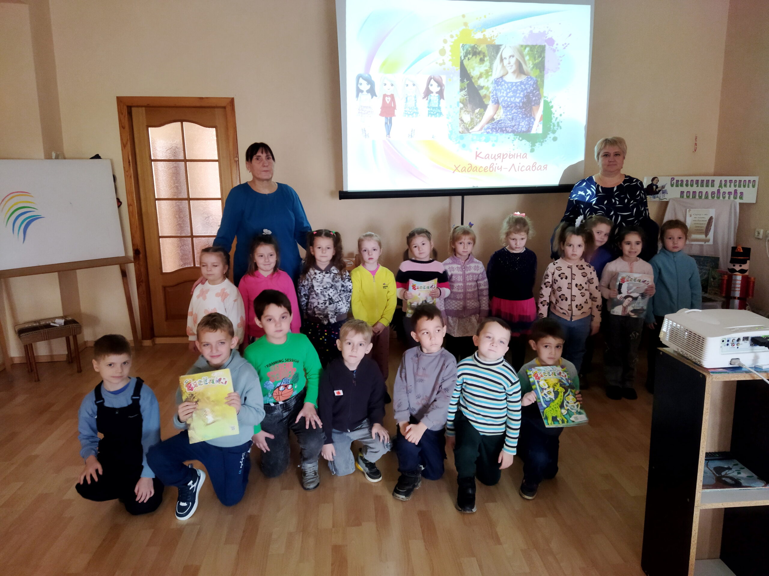 Выхаванцы дзіцячага садка № 4 былі запрошаны ў дзіцяча-юнацкі аддзел ЦРБ імя М. Засіма на незвычайную сустрэчу – экспрэс-агляд “У гасцях у часопіса “Вясёлка”. Рабяты дазналіся аб тым, хто з’яўляецца рэдактарам часопіса і як мастакі старанна працуюць, каб часопіс спадабаўся дзецям. Госці бібліятэкі слухалі вершы знакамітых беларускіх паэтаў-класікаў і творы сучасных пісьменнікаў. Вася Вясёлкін – самы надзейны сябар ”Вясёлкі”. Ён заўсёды размаўляе на роднай мове, таму пазнаёміў хлопчыкаў і дзяўчынак са слоўнікам беларускіх слоў і растлумачыў дзецям іх значэнне. А Дзед Усявед прыйшоў да рабят з чароўнай торбай беларускіх загадак, якія яны адгадвалі. А каб у зале заззялі сем колераў вясёлкі, рабяты паўдзельнічалі ў гульні “Яскравая вясёлка”.