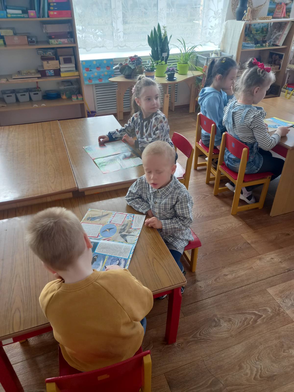 К Международному дню птиц в Колядичском детском саду библиотекарь филиала «Колядичская сельская библиотека» провела экоинформацию «Что может быть прекраснее на свете, чем голос птиц, звенящий на планете». Ребята познакомились с перелетными птицами и узнали, почему они улетают, отвечали на вопросы ведущего, дополняли предложения словами, изменяли слова по образцу и познакомились со сказкой К. Калины «Буслы».
